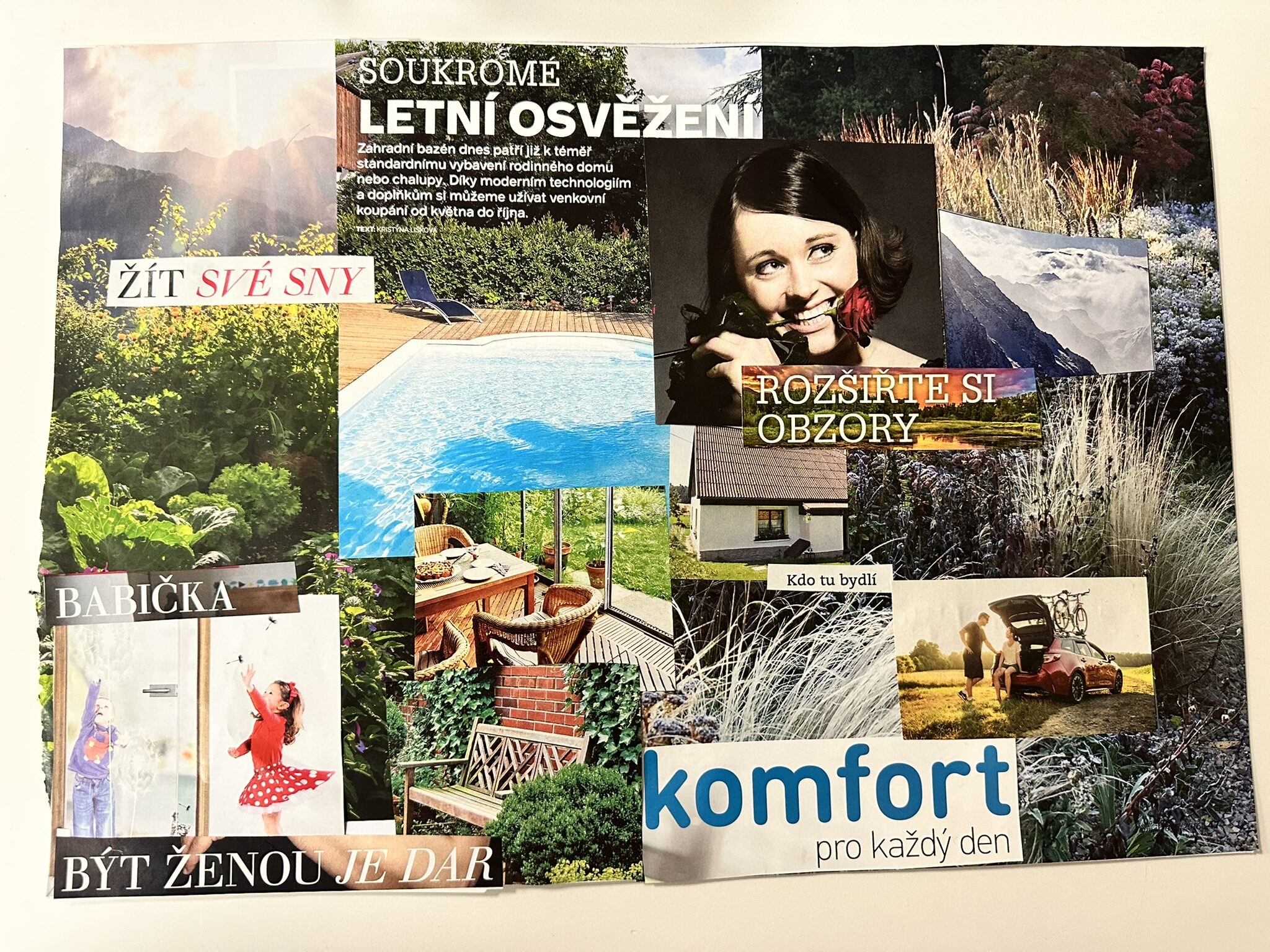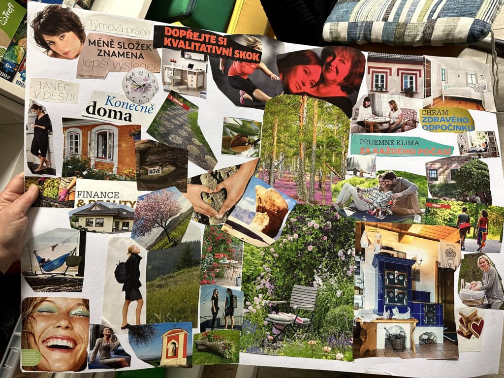 Spolu s Janou Smíškovou jsme si vytvořily vizi pro tento rok. Čekalo nás klidné a inspirativní listování časopisy, ze kterých jsme si pomocí papírové koláže vytvořily obrázky toho, po čem toužíme a co bychom chtěly do svého života přinést.