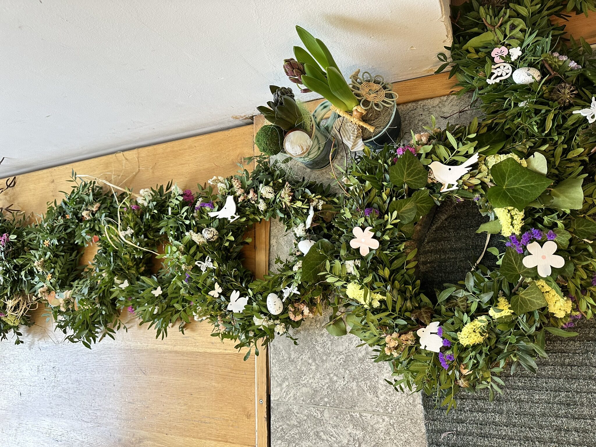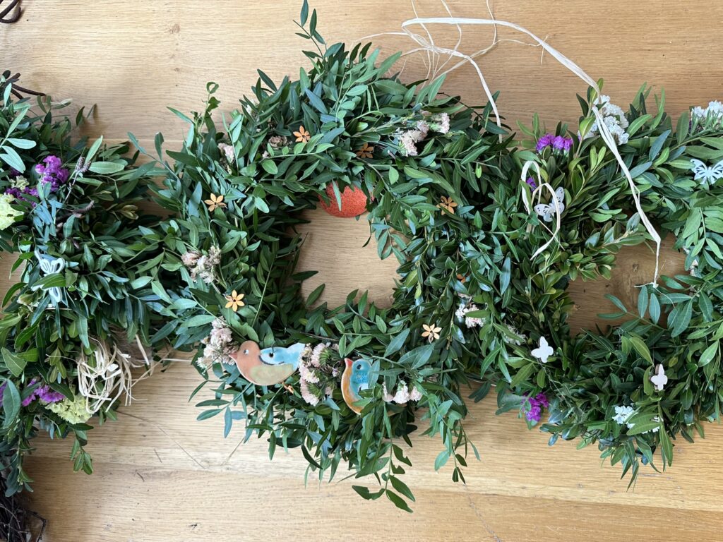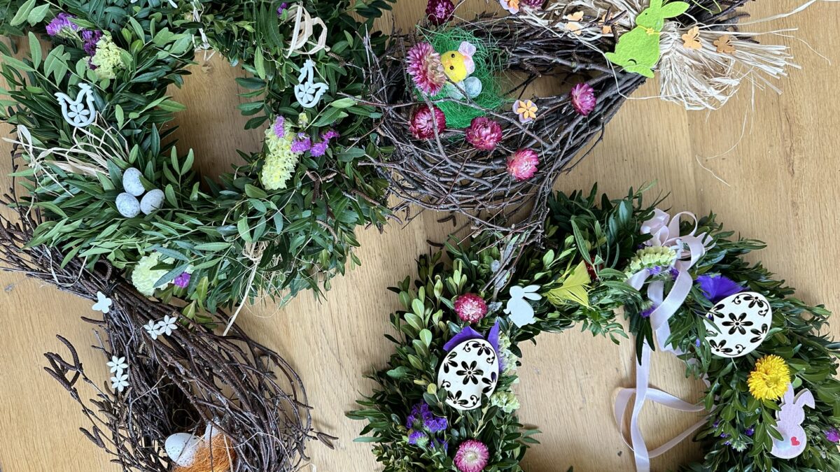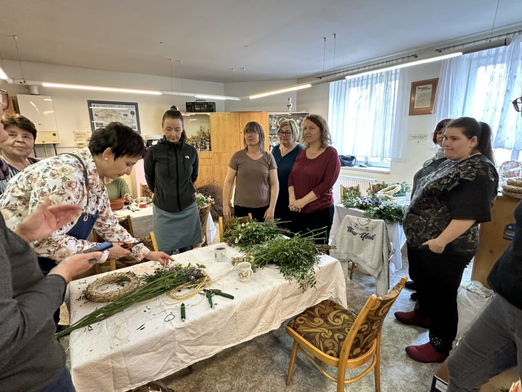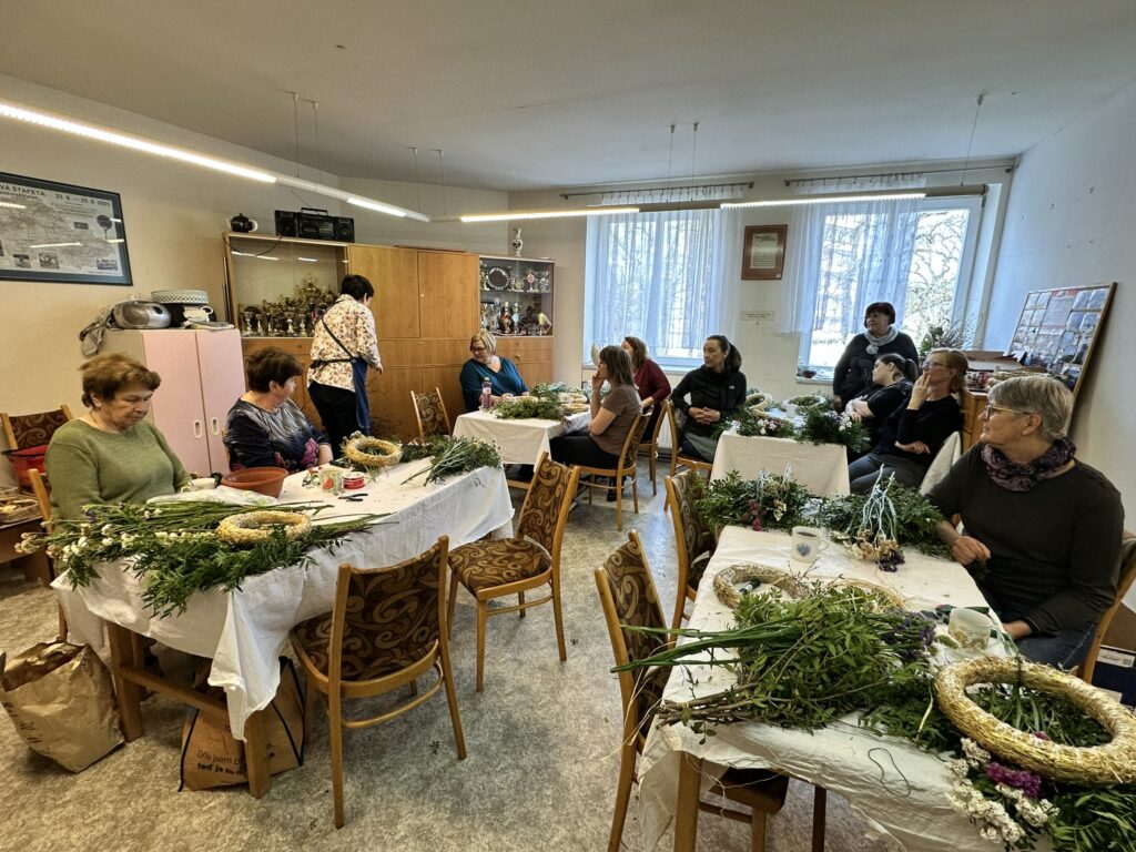 V Sokolovně v Dobříši jsme se jako každý rok sešly – pečující maminky, abychom spolu tvořily a strávily příjemný čas. Lektorka Petra Mendlová nám ukázala, jak vázat věnce, jak je dekorovat, a společně jsme vytvořily i jarně ozdobené květináče s hyacinty.